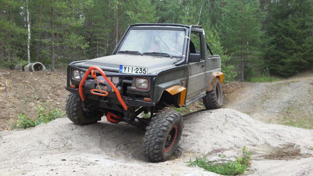 Dodiin Juupajoki takana. Kivaa oli vaikka vähän välillä meinas usko loppuakkin. Rupes tuleen muutamaan kertaan realiteetit vastaan. Kun maavara akselin alla loppuu niin se vaan loppuu. Melkein meinas joutuu vinssaan...