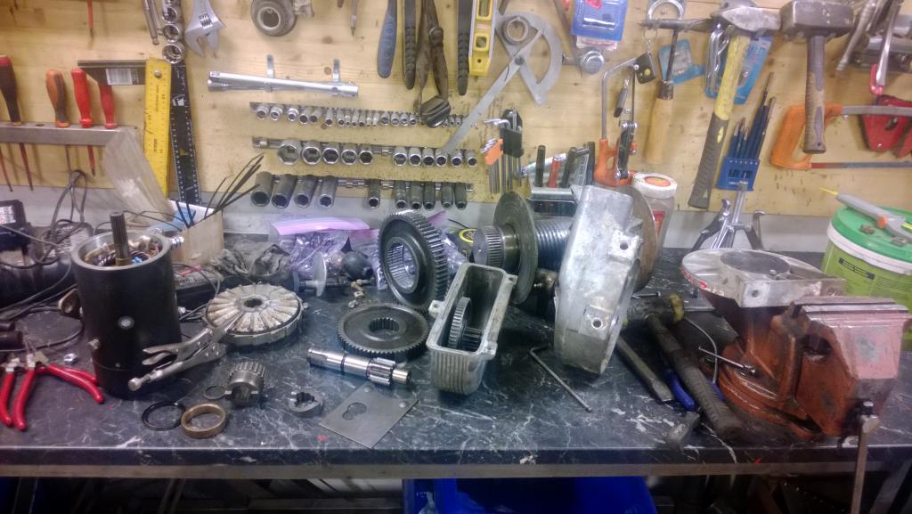 Seuraava ongelma on sitten tuo jakolaatikko, teraflexin teralow ei kestä kierroksia syömättä laakereita, jotain parempaa tarttee keksiä...