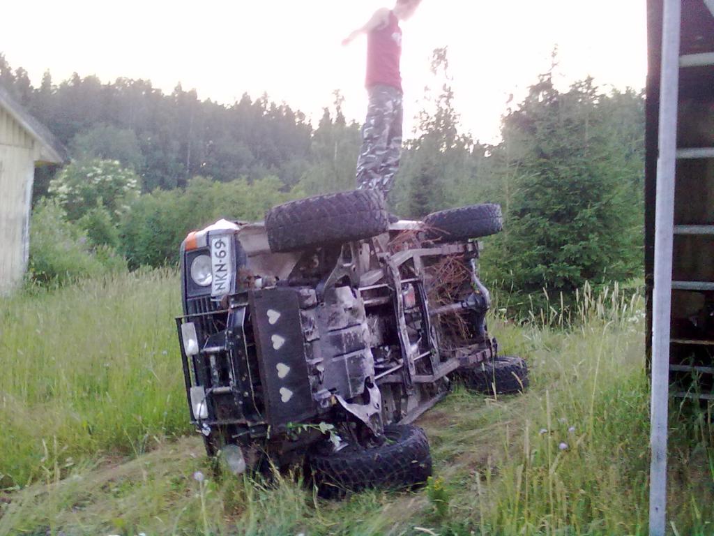 Mulla oli (on vieläkin osina) pitkä '87 ja siinä automaattinapalukot hitsattu kiinteiksi,keula ruuvattu "tappiin",molemmat kall.vakaajat pois,ahdonalaista syöttöä riittävästi ja hukkaportti jumissa.Koppaa nostin sen 5cm ja renkaina oli 31" Fediman extreme evot.Lukkoperän olis vielä vaatinu ja enemmän elävyyttä taka-akselille mutta ihan kivasti se noinkin meni.
