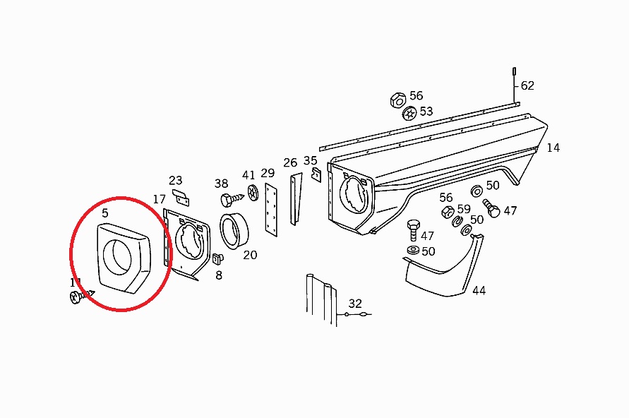 Geen lampunympäryskumiOstetaan Oikianpuoleinen lampunympäryskumi hakusessa -84:seen Geehen. Uusia saa kaupasta joten ei kannata tarjota uuden hintaista. Liitteenä kuva (osa nro.5 punaisella ympyröity) havainnolistamaan osaa mitä etsitään. Vaihdossa voin tarjota jotain Mercedes-Benz henkilöauton osaa ( http://www.nettivaraosa.com/756650 )Ostetaan