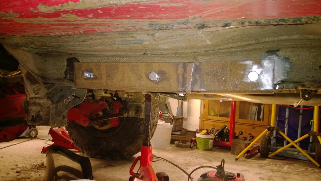 kardaanin yläpuolelle. Sitten pitää vielä vahvistaa tuota kannatinkumin yläpuolen kiinnikkeen sidontaa tuohon vaihdelaatikon