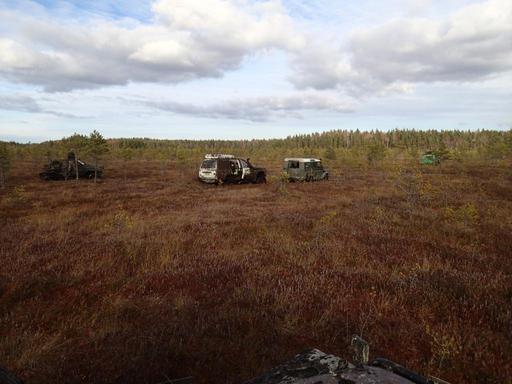 Aamulla kukonlaulun aikaan ylös ja nokka kohti suursuota. Hieman harhaudutaan aikaisemmin ajetulta reitiltä ja taas ollaan kuolleiden koivujen metsässä. Vaan sieltä se reitti löytyy ja eka pieni suonlämpäre saavutetaan. Sitten saavutetaan suursuo. Sitten onkin jo niin pehmeää että Roope ja mäyrikset kääntyy ympäri hyvissä ajoin kun vielä pääsevät. Ei käydä taustalla näkyvässä saaressa pyörähtämässä kuten aikaisemmin. Ruokatauko pidetään kun löytyy pieni kova saareke. Luonnonpöytä Matka jatkuu ja LAA puhelimesta kuullaan että kääntymyt porukka on jo vastarannalla odottelemassa. Saavutaan kuiville jossa Roope ja mäyrikset odottaa. Suo on aika tehokas rosteribedlokkien kiillottaja Eipä siinä hetken matkaa ajellaan kuivaa männikköä palo ojia pitkin mutta päätetään tutkia "mönkkärireitti". Suotahan sieltä löytyy. Kaislikossa suhisee vinssipuista pulaa Aurinko paistaa ja karavaani kulkee Sitten koukitaankin jo tutummille urille Täällä suolla pitää väistellä mm. kytkinkoppia ja sinkkiämpäreitä. No tästähän tehtii muistomerkki Mudventures 2013 reissulle. Sitten löytyikin mielenkiintoisia telakoneen jälkiä ja niiden päästä löytyi tämmönen rytmiryhmä. Ovatko lienee läheisen turvesuon sakkia kartoittamassa laajennusta. Suolta rantaudutaan hiekkatielle joka muuttuu hauskaksi leveäksi mutatieksi. Loppusakki tavoitetaan remontista tien varresta. Volvon laatikot huonosti kiinni tai jotain. Ennen kuin suolta päästään ylös kuuluu perästä että uglyllä jotain veto ongelmia ja tulee lopun pätkän hodarin liinan perässä. Vika paikallistuu takaboksiin jonka korjausta varten pystytetään remonttileiri metsään. Takatikusta boorit korkannut. Nuotiolla rommikola maistuu. Matka jatkuu ja meinaa oikein sataa luntakin. hmm. ei varmaan saa tästä mennä? Uusi tie hieman vaarallinen kun törröttää harjateräksiä pystyssä joka puolella. Lähellä Vuoksenrantaa ollaan menossa kohti Pamela leiriä. Pamela leiri vaikuttaa aika kylmältä paikalta ja yläleirissä on ryssän tulet vaikkei ketään missään. Ei jäädä sinne vaan ajetaan muutaman kilsan päähän ja jäädään tien varteen yöksi. Jatkuu... |