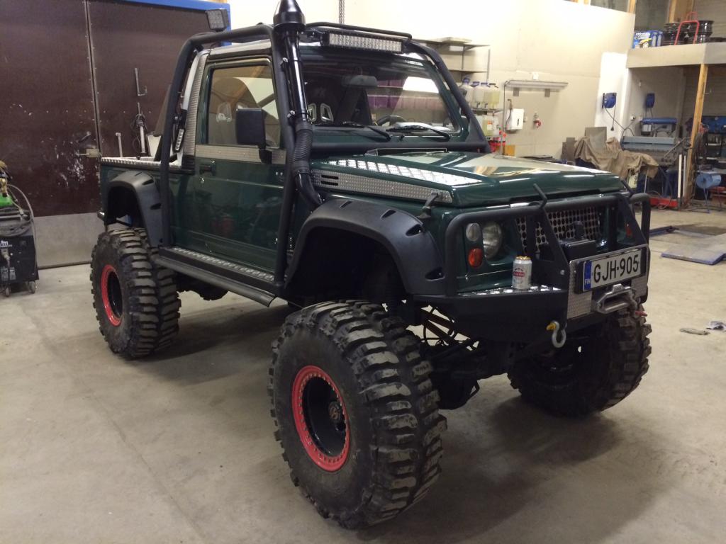 Kaiken varalta hiukan tingittiin pyörien Max kääntökulmista murroksia ajatellen, joka saattoi kyllä olla hätävarjelun liioittelua näillä tehoilla ja painoilla. Onneksi Max kulmat saa toppariruuveja kiertämällä muutettua takaisin alkuperäisiksi. Pyörien sisäänjousto on rajoitettu niin että eivät ota pyöräkoteloon kiinni kuin ihan hiukan äärikulmassa penkkaa vasten juntatessa. Tämän kun tietää niin ei ongelmaa. Renkaat kun saadaan vielä pyöreiksi niin tyytyväinen olen.