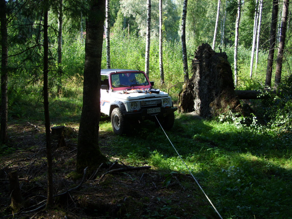 Cherokeekin kävi vuoden tauon jälkeen taas leimalla hyvällä menestyksellä. Metsästysreissun yhteydessä tuli vähän polttopuita haettua metsästä ja pääsihän siinä samalla tuollakin vehkeellä pitkästä aikaa vähän tien ulkopuolelle. Pientä lisähaastetta toi noin tonnin lisäpaino perässä ja peruutellessa kärryn pitkä aisa telin akselista kattoen. Vaan hyvin tuli puut pois metästä.