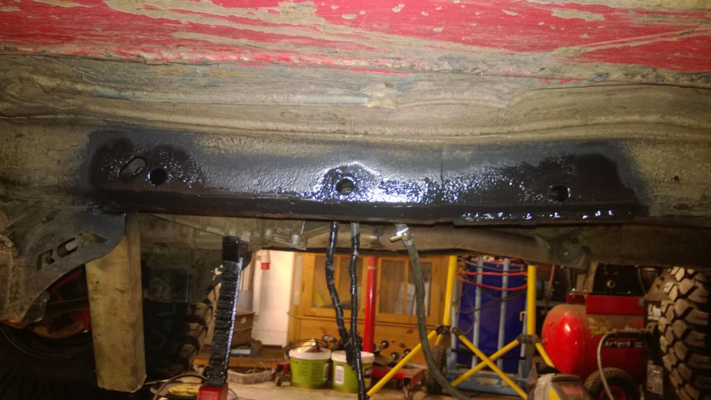 Tuo vanha tukipalkki on ottanut osumia tuolta 'runkopalkin' vierestä kun toisella puolella on kardaani ja toisella puolella pakoputki