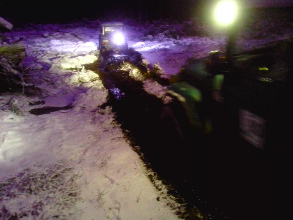 Maantielle tultua koottiin letka kasaan: Perillä ensimmäinen oja muodostui vaikeaksi: Hilua vinssataan pois. CJ yli ajamalla: Tämän jälkeisessä jyrkässä nousussa krusahti etuveto, tosin mäkeä ei ajamalla mennyt yksikään auto! Mersussa tuunaus valoja: BJ alamäessä: HJ sama paikka: Mönkkäreitäkin oli pari mukana: Uudelle alueelle lähdettiin iltapäivällä: Ei se ihan helppoa ollut, puolet alueesta jäi ajamatta, kun tuli hämärää: Pääsi ledivaloja kokeileen: Vihdoinkin saunalla: Saunakuvia lisää sitten kun asianomaiset on antaneet luvan! Enempi kuvia profiilissa. |