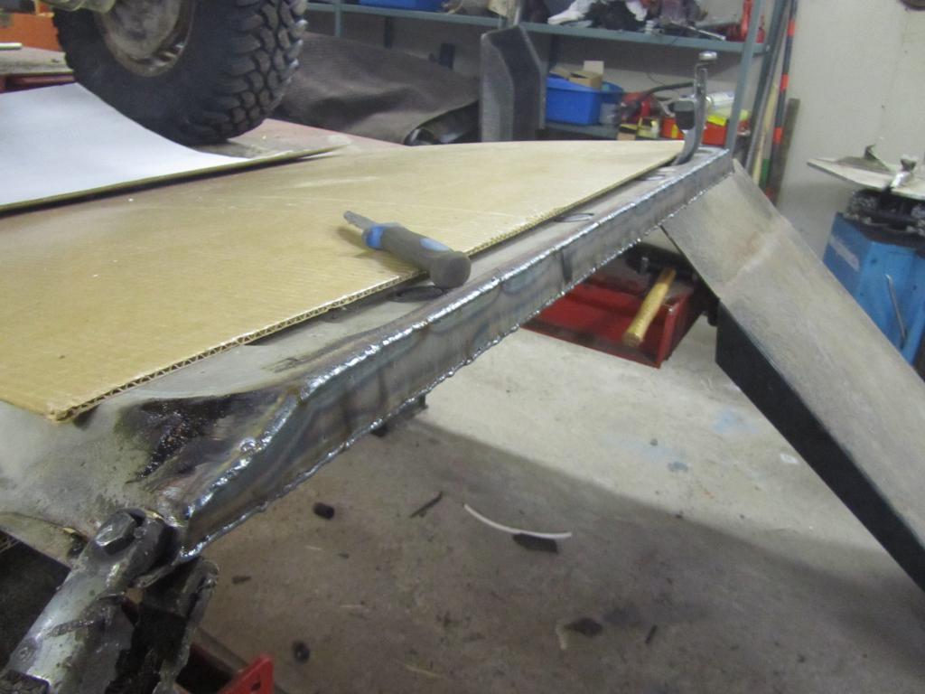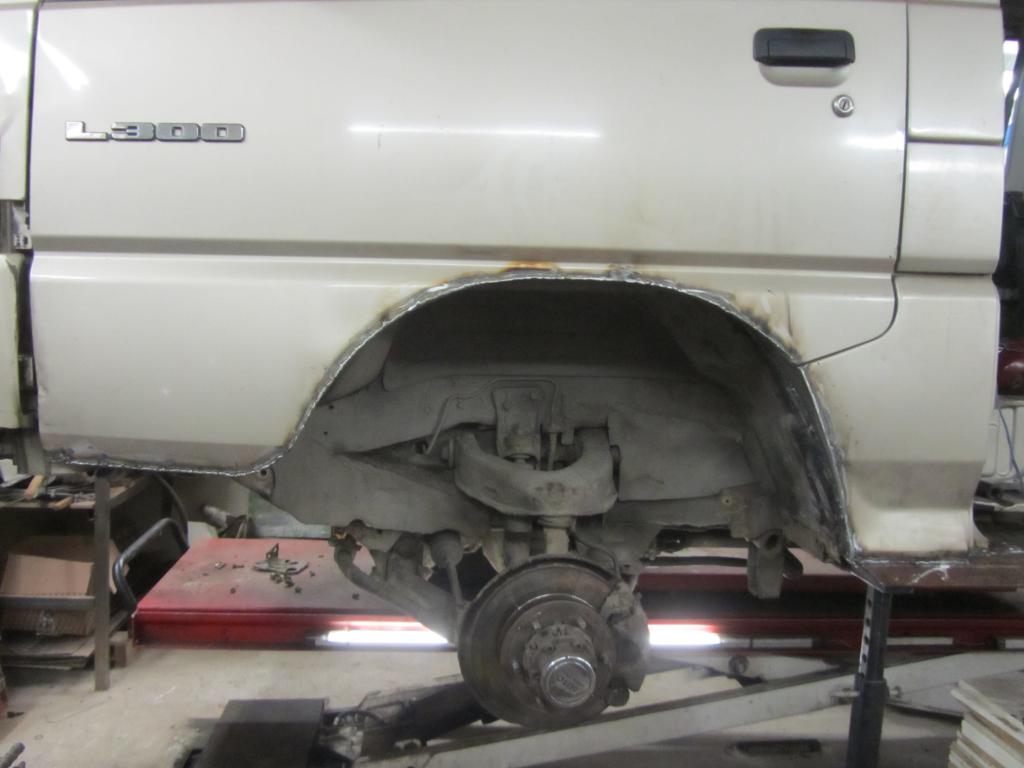 Helmapalkki oli muistaakseni 100X40 ei mitenkään älyttömän paksulla seinämällä. Tölkkikuvassa on vakio jouset, tosin vääntösauvat aika tiukalle väännetty. tänään meinasin niitä löysätä. Alle tulee 33"x12,5x15 renkaat ainakin näyttäs sopivan alla hyvin pyörimään kun isonsin nuo pyöräaukot. Tosin noilla 10" leveillä vanteilla tulee 4cm korilinajan ulkopuolelle ja liukuovet ei sovi aukeamaan kuin 30cm. tämä vaikeuttaa myös jonkin sortin levitysten tekemistä. Pitäs jonkun viisaan kertoa että mitenkä saisi oven siirtymään ulommas ovea avatessa. Edessä pyöränaukon isontaminen olikin hieman isompi homma kun joutu noista ovistakin ne isontamaan. No ei tule mikään näyttelyauto eikä mikään äärimmäinen offroad peli. Enempi tälläinen maastokelpoinen retkeilyauto perheenkanssa matkusteluun.