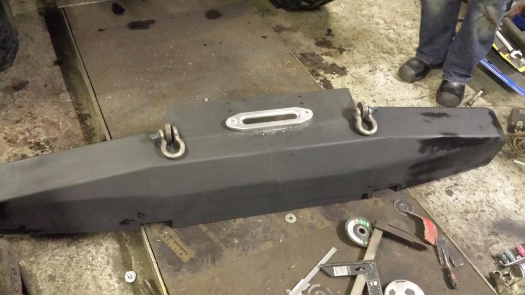 Jeeppiin askarreltiin vähä puskuria ja vinssiä...