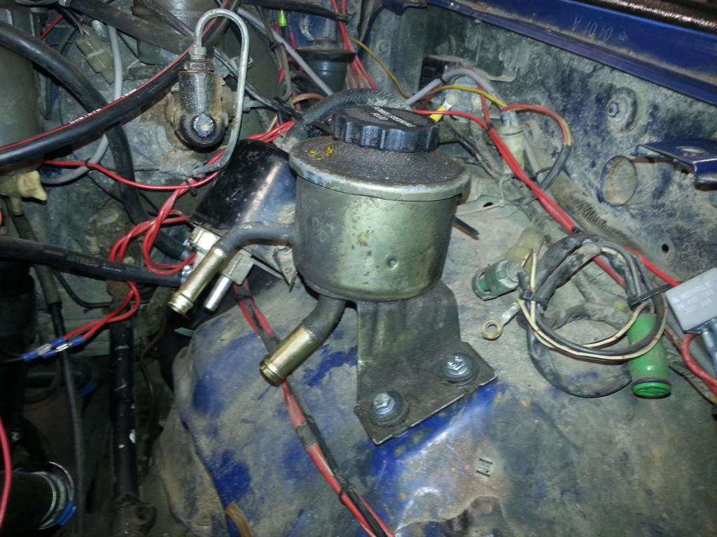 Tässä koneessa on alunperin alipainepumppu. Moottorin nokka pyörittää sitä. Jouduttiin se poistamaan kun ei oikein mahtunut olemaan siinä kun otti tulipeltiin kiinni. Tulipeltiä moukaroitiikin mutta ei saatu järkevästi lisää tilaa. Parempi laittaa toinen laturi, missä on alipainepumppu ni saa samalla lisää virtaa autoon