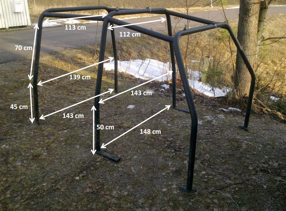 Keskikaari: - ihan alhaalla 148 cm - noin 50 cm korkeudessa (jossa on pieni taivutus) 143 cm - ylhäällä (70 cm korkeammalla kuin edellinen mittauspiste) mutkan alapuolella 112 cm Takakaari: - alhaalla 143 cm - noin 45 cm korkeudessa (jossa on pieni taivutus) 139cm - ylhäällä (70 cm korkeammalla kuin edellinen mittauspiste) mutkan alapuolella 113 cm Suora pätkä katolla keski ja takakaaressa (mutkien välillä) on noin 92 cm. Ja pystyosien korkeuden näissä on siis 115 - 120 cm - siis mutkien alapuoliset osat. Voin yrittää ottaa huomenna parempia kuvia ja piirustaa mitat kuviin. ******Edit******* Ja miks tässä nyt uusia kuvia tarvittaisiin, kun vanhatkin on ihan ok. ******Edit******* Mitat on siisi putkien välissä oleva tila. Mä uskoisin, että keski- ja takakaari olivat alunperin samanlaiset. Takakaari on vain ollut puristettuna tiukemmin auton puskuriin pultattuna. Ja takakaaren putkia on alhaalta lyhennetty tuon 5 cm enemmän kuin keskiputkea. ******Edit******* Tarvittaessahan tuosta voi rälläköidä välipalat pois, ja sovittaa pääkaaret uudelleen sopivammalle etäisyydelle korista. Viimeksi muokannut ismo : 08.03.2014 09:31 |