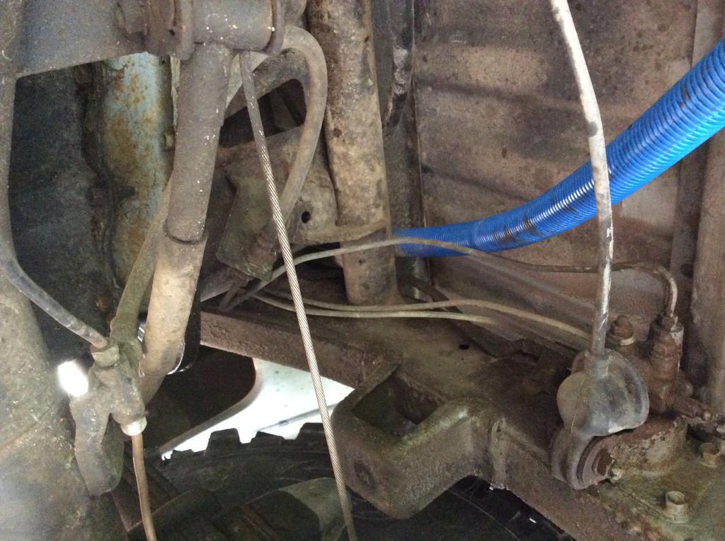 Eli tuosta nyt selviää ainakin se, että ylimmäisestä menee takajarruille. Noita kahta edestä tulevaa putkea en sitten viittinyt kuravedessä kontaten lähteä setvimään...