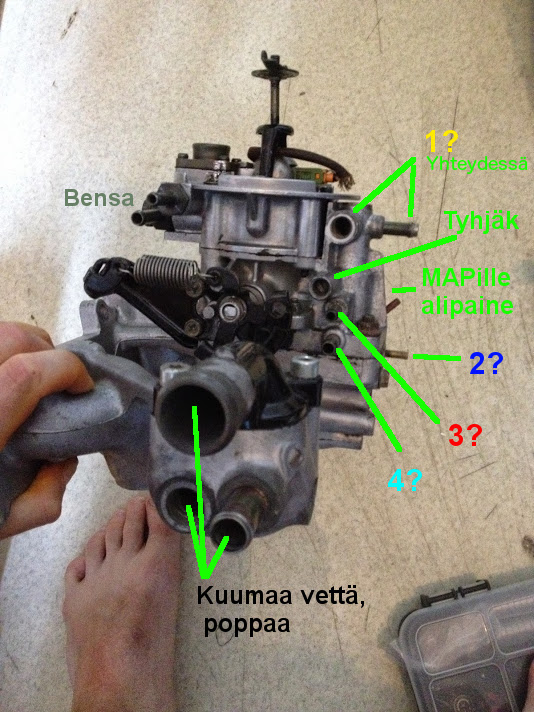Bensan tulo ja paluu on selkeä, sekä MAP-anturille löyty viisto putki manuaalien perusteella. Toistaiseksi outoja on numero 1-6.