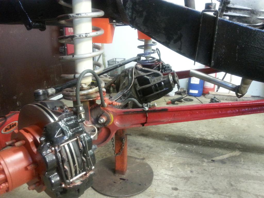 Meni kohtuudella kun ensiks rötväs kaikki laakerit paikoilleen ja viimestä vaihtamassa niin kone pukkiin. Noh ei hätä ole tämän näköinen.Autoa on kuitenkin saatu valmisteltua muilta osin: -Etujousitus/ripustus alkaisi oleen panhard-tankoa vaille valmis. -Takajousitus/ripustus on valmis. -Ruostekorjaustakin tehty rungolle, takaiskarin korvakot pois-> rotta käynyt rungon kimpussa. Tehtävää ennen korin paikalleen nostoa: -Takajarrujen muuttaminen levyille. -Jarruputkien vetäminen. -Pakoputken teko. -Kardaanin sovitelaippojen teko. -Koneen laakerointi, kasaus ja paikalleen nosto. Vieläkin pysyn tavoitteessa että auto katsastetaan keväällä -14. Saas nähdä. ![]()