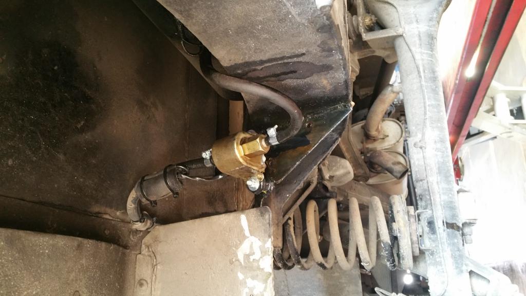 No tankkivarustehan oli mätä joten kuulapuhalsin sen päältä ja korjasin imupuolen putken ettei tarvi heti ihmetellä ilmavaivojen kanssa. Tankin kiinnikkeisiin joutu tekemään sovitteet ja niitäkin tuli hinkattua vähintään riittävästi, tuntuu nimittäin että auto ei tule valmistumaan ikinä kun koko ajan täytyy olla porailemassa "motorsport" reikiä. Pöö-linjat meinasin vetää 6mm nailonputkesta ja kiinnittää runkoon hydrauliputkikiinnikkeillä, kai tuo nailoni maasturissa kestää kun tuntuu kestävän kuorma-autoissakin. Vähän turhia kuvasaasteita loppuun.