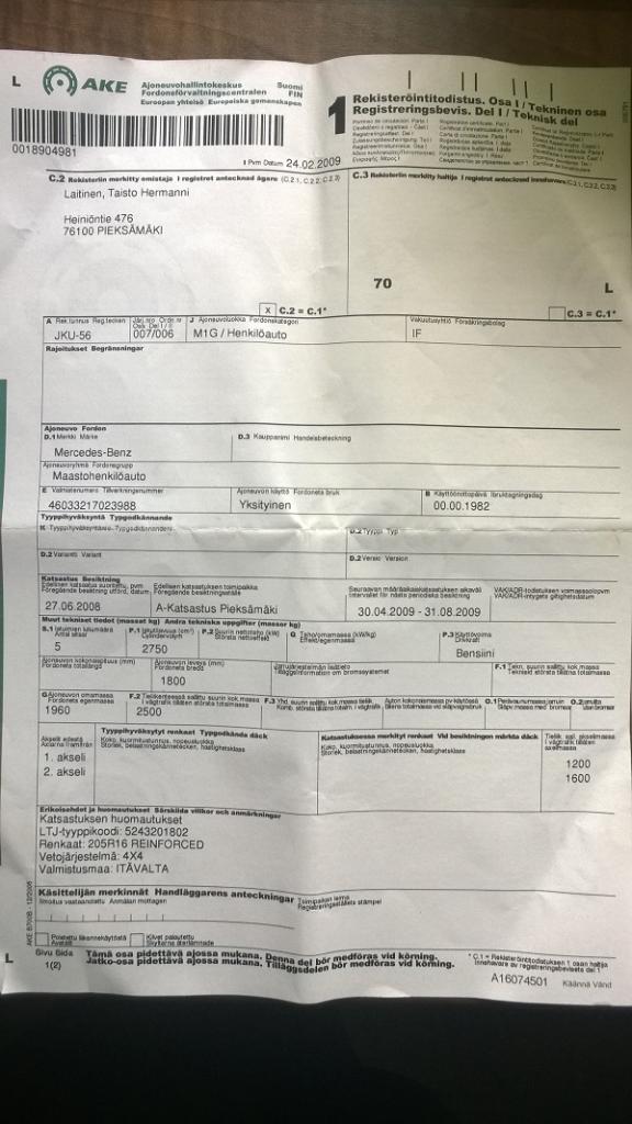 MB G280 vm.82 pätkäMyyty Terve!Setäni olisi myymässä Mersuaan, eli olisi tollanen pätkä G280 vuosimalli 82 automaatti, liikennekäytöstä poisto tehty, mut kilvet on, Autoon saa laittaa 35 pyörät alle, merkattu rekisteriotteeseen, Metsää nähnyt auto, Autoon on rakennettu taakse kiinteä vinssi, Ajokuntoinen, Mukaan tulee varaosia, mm. toinen konelaatikko paketti, ulkopeltejä, ja etu ja taka akselit, + muuta pientä kilkettä. Lisätietoja saa soittamalla Numerosta: 0405054786 Ja hintaahan olisi autolla + varaosilla 3400€ Myyty Viimeksi muokannut offroadjouni : 04.11.2014 18:53 |