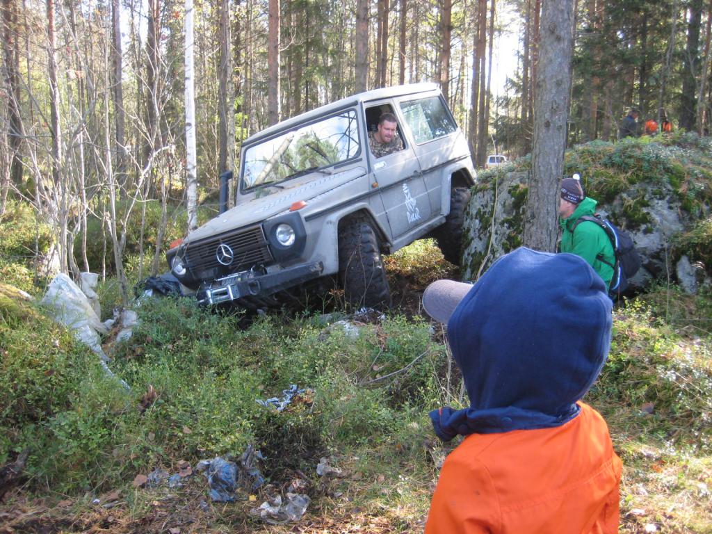 Paavo ja Jalmari kiittävät MMC:n väkeä kivasta lauantai-iltapäivästä. Uudet reitit jäi allekirjoittaneelta koeajamatta, mutta kallioilla päästiin sentään kömpimään katuautollakin. Peikot olivat vissiin paenneet moottorien pauhua, kun luolassa ei näkynyt ketään?