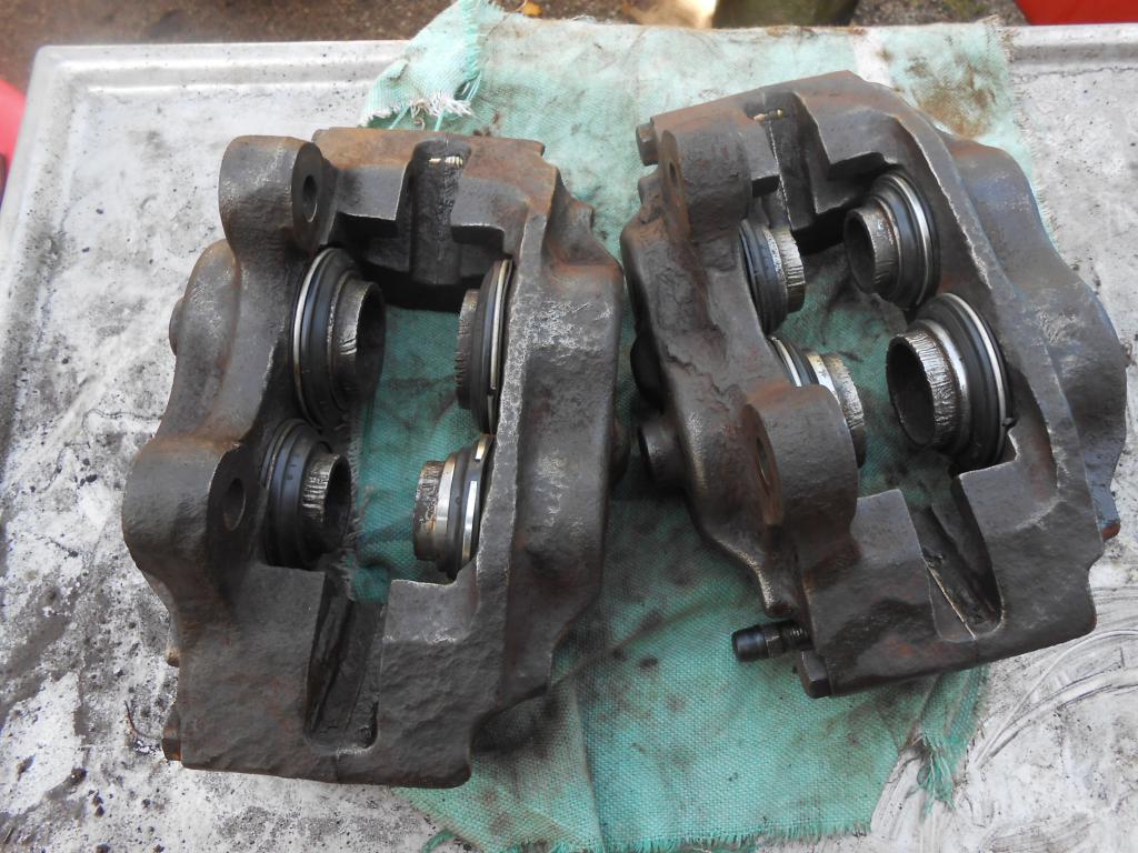 jotain pientä saatu näperrettyä. Etu akseli olis jarrusatuloiden kiinnitystä vaille valmis. Jarrusatulat huollettu, kummit saatu vanteille ja pyöriäkin soviteltu paikoilleen.