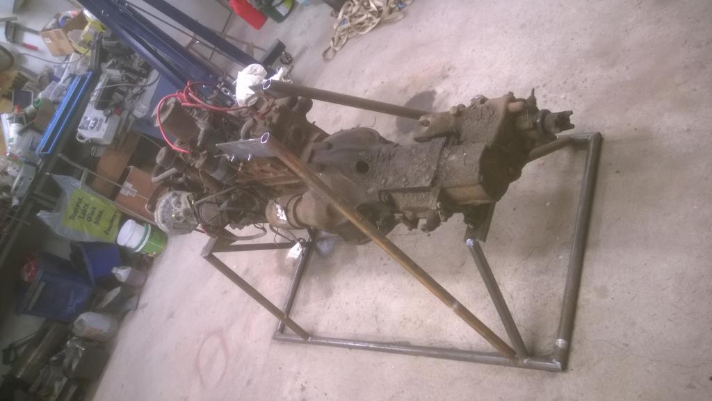 Tarkotus olis tekasta tuolle moottori - laatikko setille putkesta teline jotta sen säilytys ja rassailu olis vähän helpompaa. Vielä iskarintolpat, bumpstopit, käsijarruvaijerin kiinnikkeet ja yks lämppärin kiinnike irti ja runko alkas olemaan puhallus ja maalaus kunnossa. Akselit irtoaa vielä jos ne halutaan pois puhalluksen tieltä, mutta jos ei niin 'rullaavana' mennään hiekkakylpyyn. Eli seuraavaks tuolle moottorille se teline ja ehkä joku samanlainen rullaava teline korille että saa senkin suojaan ja työn alle helpommin... Sitten jos sitä laatikot purkas ja kattelis tuota moottoria hieman. |