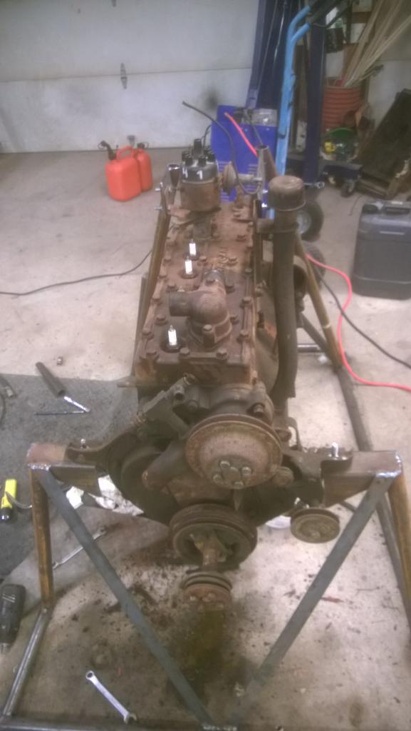 Itse en silloin pyörittänyt sitä ollenkaan, Vaihdoin öljyt ennenkuin aloin yrittämään sitä käyntiin. Muutama venttiili oli jumiutunut käyttämättömyyden takia, Ne sai aika helpolla elvytettyä liikkeelle kun L-mallisella tangolla napautti ne tulpanreiän kautta alas