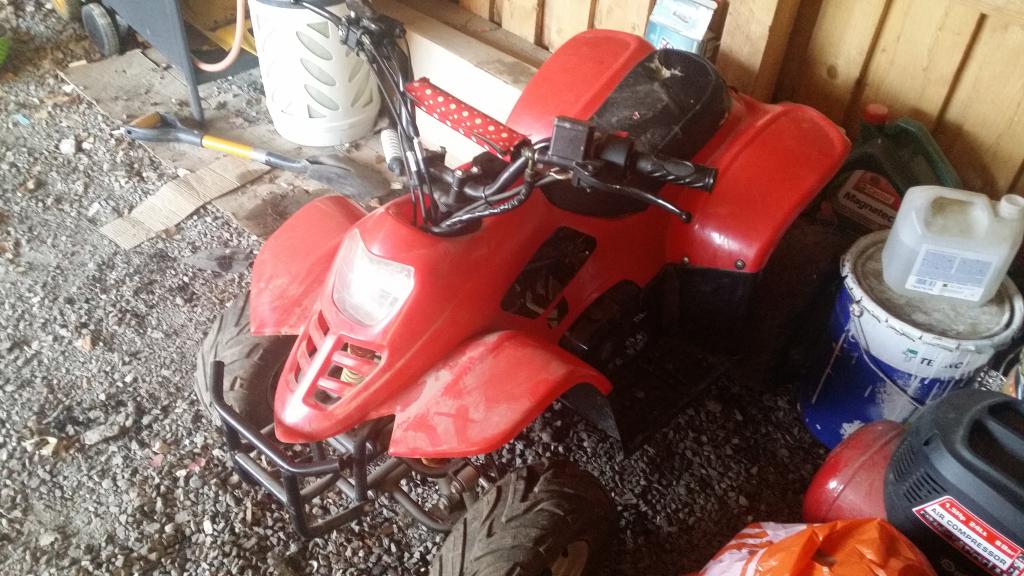 ![]() Mönkkäri lapsilleMyyty Myydään mönkkäri mikä palvellu meillä kaksi kesää.Ei pienin vaan keskikokonen malli. Hyvin jaksaa viedä 100kg äijää pikkujäbä sylissä ajaen. Meillä 6 ja 9vuotiaat lapset on tolla pärjänny hyvin kun kaasua saa säädettyä pienemmälle. Kuutioista ei ole tarkkaa tietoa eli ostaja varautuu ton olevan joko 70-90-110cc. -Plussat- -Hyvin vääntävä moottori. -Jousitus edessä ja takana "pienemmissä ei ole kun takajousitus" -Kääntyvyys -Suhteellisen siisti -Etuvalo toimii -Automaatti -Nelitahti -Miinukset- -Renkaat vuotaa eli pitää täyttää kerran päivässä. "Paikkausvaahdolla tämäkin kunnostuisi" -Akku ei jaksa pitää virtaa kauaa -Uusi tulppa pitäis vaihtaa -Takavalo rikki -Runkoon pitäis hitsata pieni sauma ettei moottori pääsis heilumaan. "Näkyy kuvassa" -Tuote mäntsälässä ja hintaa 175€ Nr0: o452 3163 o2 Myyty Viimeksi muokannut Nall3 : 01.11.2014 14:56 |