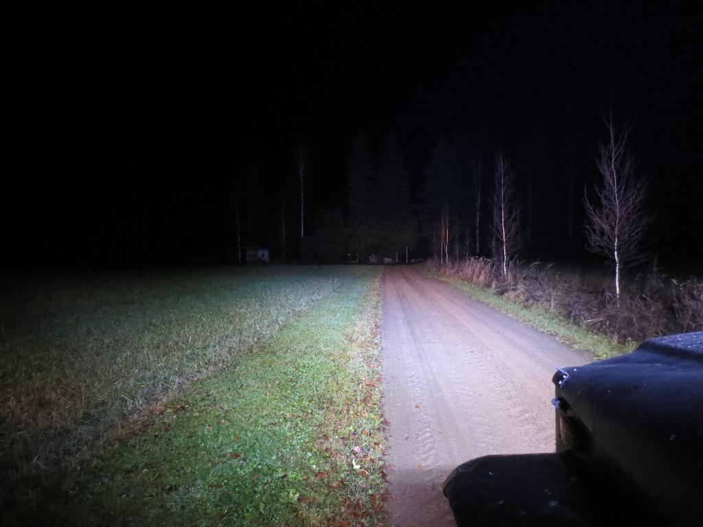 Ja sitten varsinaiset testikuvat, kyllä pitää sanoa että tuosta 54" led barista lähtee kyllä hillittömästi valotehoa Jopa näin kostean pimeänä syysiltana valaisee vähintäänkin riittävästi.