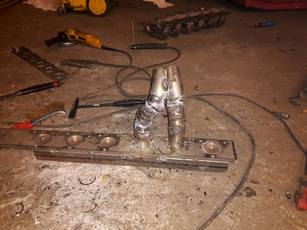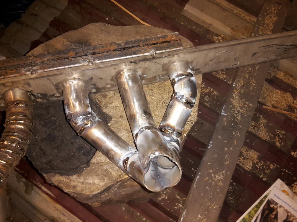 Huomenna teenkin toisen samanmoisen ja sitte laippoja värkkäilemään ja turboja sovittelemaan.. ![]() Vääntelin ahtimetkin tänään oikeisiin kulmiin.. |