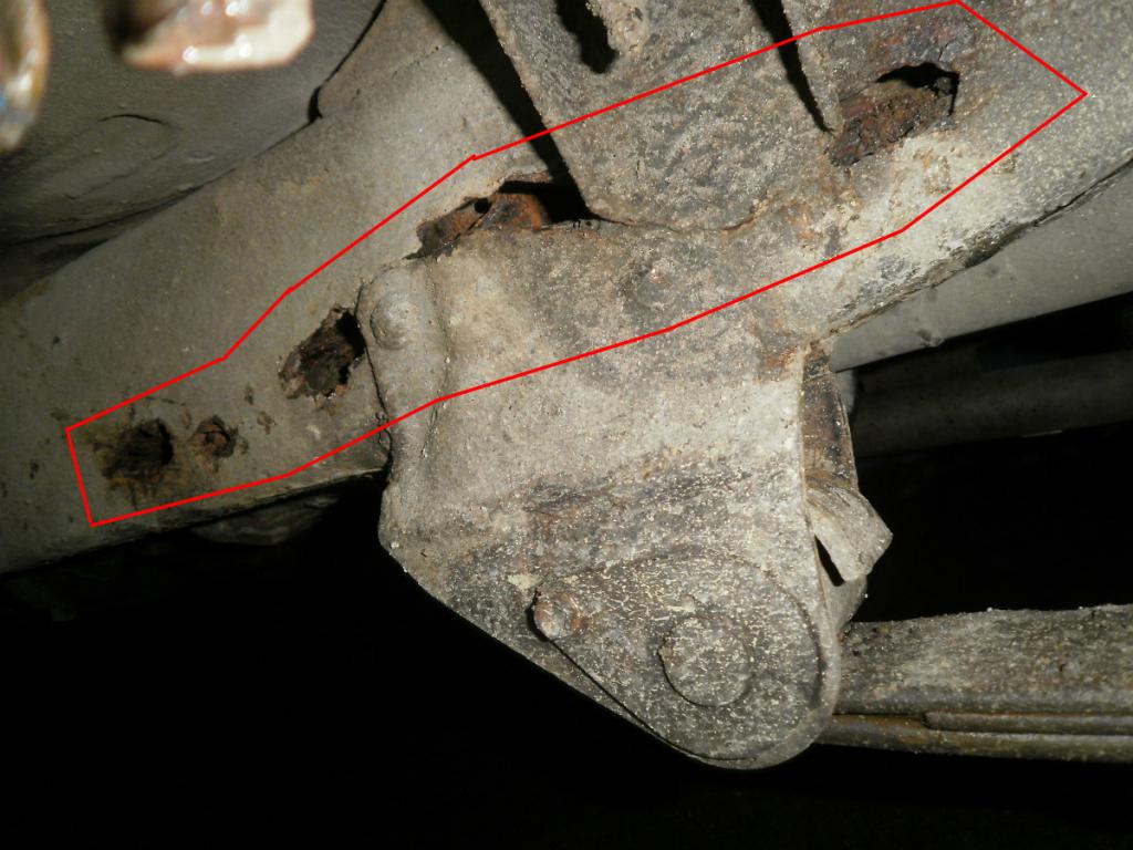 Se kyl olis muuten yksinkertasempi jos tuhoais tosta ruosteet pois, sit tekis tohon korin/jousien kannakkeiden kohdille sopivan korjauspalan ja sit leikkais noista kannakkeista jonku pätkän pois sillee et sais sen toivottavasti fiksun näkösen suorakulmasen pellin sopimaa tohon välii ja koittais hitsata sen palasen kiinni noihin kannakkeisii ja runkoo.