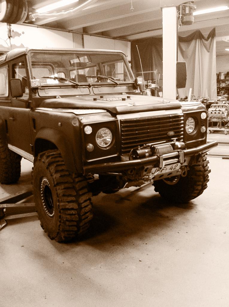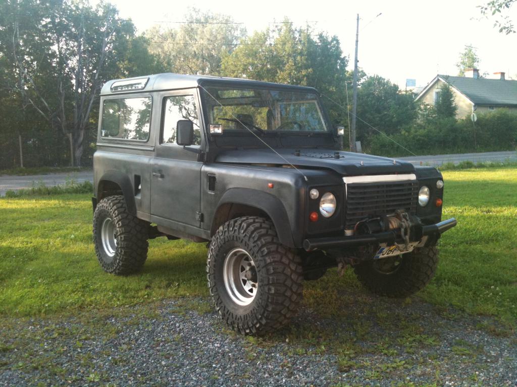 "Ninnin" Defe 90Tarinaa: Sukuvikaa...kaikkilla meidän suvussa pitää olla Rover, joten niin kai minullakin... Tämä kikkare on palvellut kohta 5 vuotta minulla, pääosin sillä on tutkittu Venäjän pohjois osia noin 16000km verran. Neitsytmatkan Defe suoritti vuonna 2007 tai 2008, tällöin se oli viellä suht vakio 300tdi moottorilla ja 2" korotuksella ja sedältä lainatuilla 36" tsl sx renkailla. Evoluutio on sitten jatkunut, väri vaihtui mustaksi...lavapinnoitteella ja samoihin aikoihin 300tdi moottori haukkasi vettä jäämerenrannassa ja nilkutettiin koto Suomeen just ja just... Sihvosilta tuli "bolt on" TD5 moottori...juujuu...menee heittämällä... noh, nyt se toimii. Tässä vaiheessa renkaat vaihtui 39,5" Boggereihin ja korotusta hieman lisää.. Tällä setupilla tuli tehtyä muutama reissu pohjosen paratiisiin kunnes Sihvosilta löytyi Volvon akselit ja Defe oli taas työnalla. Muuta viikko myöhemmin Defe liikkui Volvon akselit alla...tosin aiwan helvetin hitaasti. Joten hommaa taas tarjolla...Soittoa Sihvolaisille ja Discon jakista hakemaan. Muutamaa tuntia myöhemmin kulkupuoli oli jo huomattavasti parempi ja taisin ekaa kertaa ajaa jopa kotiin asti sillä. Tällä hetkellä Defe on muuttunut avoksi, Sihvosten vanhoilla Ladoga kaarilla, joihin lisäilin duunikaverin kanssa noin 9m lisää putkea. Samoin koko ovet vaihtui puolikkaisiin. Alusta puolella on koitettu ties ja mitä iskareita ja nykyiset erillissäiliö 10" iskulla olevat Terrafirmat on ollut tosi hyvä valinta...edessä viel lisäksi bump stopit. Alusta kokonaan panssaroitu koneen alta jakikseen asti. Edessä ja takana on Superwinch EP9.0 vinssit. Moottorina TD5, 178hv/433nm itse säädettynä.