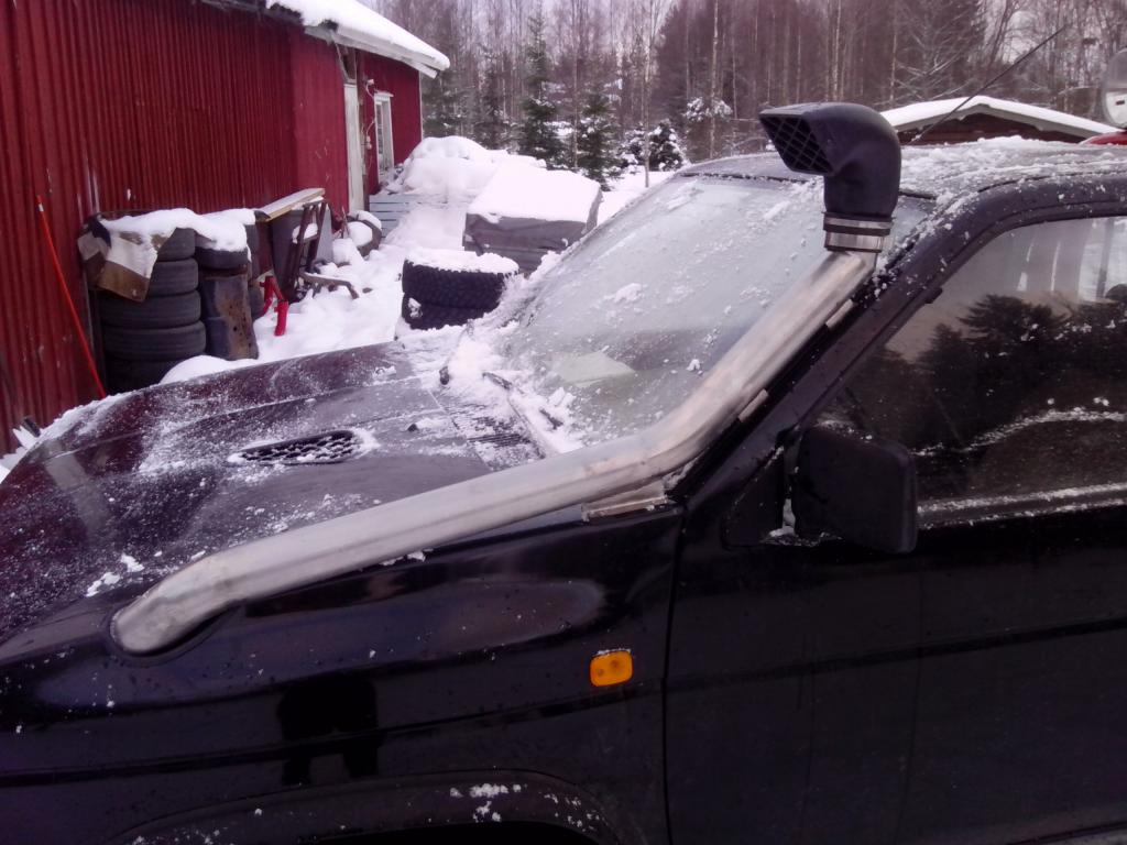 Miettiny kans tätä snorkkeli jutskaa. "safari" Snorkkeli/kopio ei oikeen miellytä ja toisaalta riittäis ihan tohon tuulilasin alareunaan korkeakin. Mut jos katolle veis niin miten sais fiksusti että ei osuis puihin eikä sit taas olis näkökentässä. Tosin hodarissa se tulis sentään hantin puolelle... vähän vaikee yhtälö saada hyvää ja siistiä...
