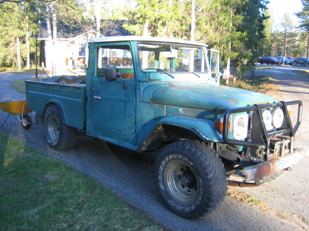 Syksyn aikana autoa tuli ehostettua sieltä täältä. Lavalle tein vanerista laatikon jonka suojiin saa heitettyä irtotavaraa jotka eivät hyttiin mahdu. Lisävalotelineenkin tein joihin pulttasin tuommoiset Bosch:in peltiämpärit. Telineestä tuli sen verran jämerä että valot eivät tarvitse lisätukia ja jos se poro haluaa tuohon keulaan juosta niin ei se toivottavasti ihan syyläriä vasten painuisi. Eihän tuo häkkyrä silmiä hivele komeudellaan mutta josko se tuota keulaa suojaisi jonkin verran. Äänieristeeksi laitoin lattialle paksua lattia mattoa ja kattoon laitoin vähän ohkasempaa huopaa. Radio ja kaijuttimetkin löysivät paikkansa tuolta katon etuosasta. Hytti hiljeni ihan inhimilliseksi ja jopa radiokin kuuluu ihan kohtuu volyymilla. Korvat eivät kohise pitemmänkään ajon jälkeen. Matkamittarikin alkoi jumimaan tuossa syksyn aikana mutta kun mittariston purki osiin ja putsasin sieltä jotkut vanhat vaseliinit pois niin johan alko kilometrit vilisemään. Onneksi näille vanhoille romuille voi itse vielä jotakin tehdä ja yksinkertainenkin kaveri näille pärjää.