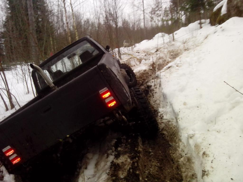 Takaluukku tuli rakenneltua tommonen tyly räpellys. 3mm pellistä tehty. Kelpaakohan katsurille valot.. nuo työvalot on ns. peruutus valot. Levikkeitä pitäs alkaa suunnittelee, laitanko vielä takas ne mitkä tossa olikin vai hitsailenko pellin lisun tohon kaareen ja niittaan siihen levike kumin päälle. Renkaatkin vaihtui. Omat vanhat BF Mud-terrainit ajautui takas mulle. 35"x12,5"x15"