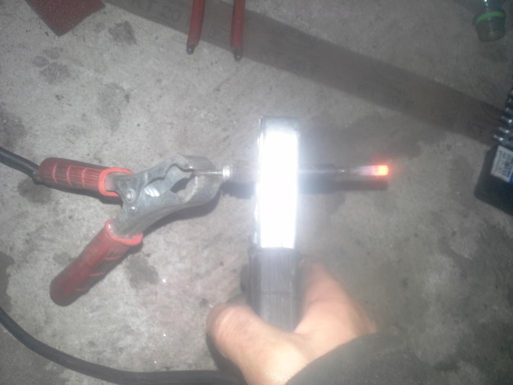 Putken tein vaatimattomasti 88,9 rosterista, kun isompi ei ois enää oikeen mahtunut. Toistaiseksi saa jäädä tuonne pyöräkoteloon asti, jossain vaiheessa sitten laitetaan joustokappale tuon suoran tilalle ja jatketaan helman alle, että saahaan jonkinlainen änkkärikin katsurimiehen mieliksi sinne. Puikolla päätin turauttaa, kun LVI-Lehto Oy armeliaasti lainasi tinauslaitetta ja rosteripuikkojakin sattui olemaan hyllyssä. Vähään aikaan ei taas oltu puikolla tuikittu ja sitämyöten hitsausjälki oli taas taattua insinöörilaatua, mutta itse kun tekee, niin saa mitä ansaitsee. Vähän moponetin termoteippiä päälle ja hyvä näin, tuuninkia kerrakseen taas. Eikä pitäis pahasti ahistaa..