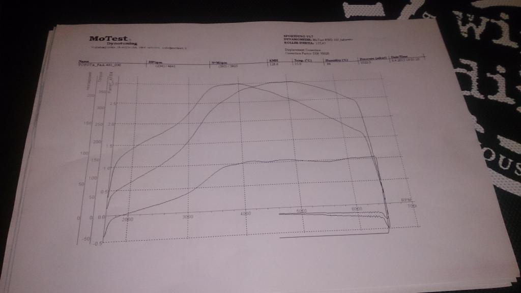 eli saatiin tämäkin vihdoin rullille ja säätöihin kunnolla. vehje toimi penkissä tosin hyvin ainoa ongelma oli bleedin kanssa ei tahtonut toimia.. 3h meni säätö töissä.. eli paras veto oli se 257/440 ja (metsä ajo paine 1bar 234hp (4641rmp) 393nm (3925rmp) tosin pitää muistaa että tällä olis varmaan ensi viikolla leima niin siviili liikenteessä olisi tehot 121hp/177nm 0,3bar