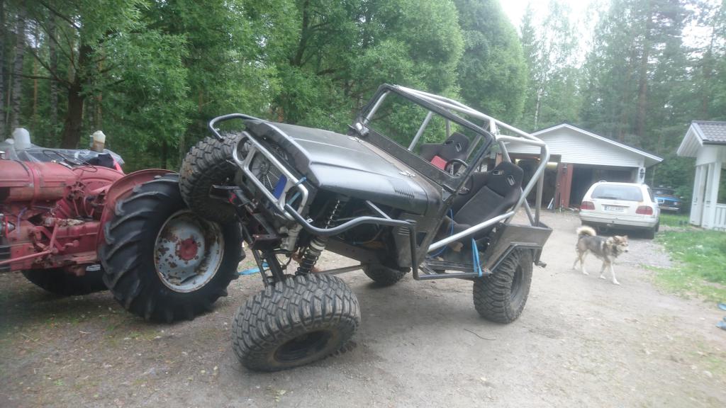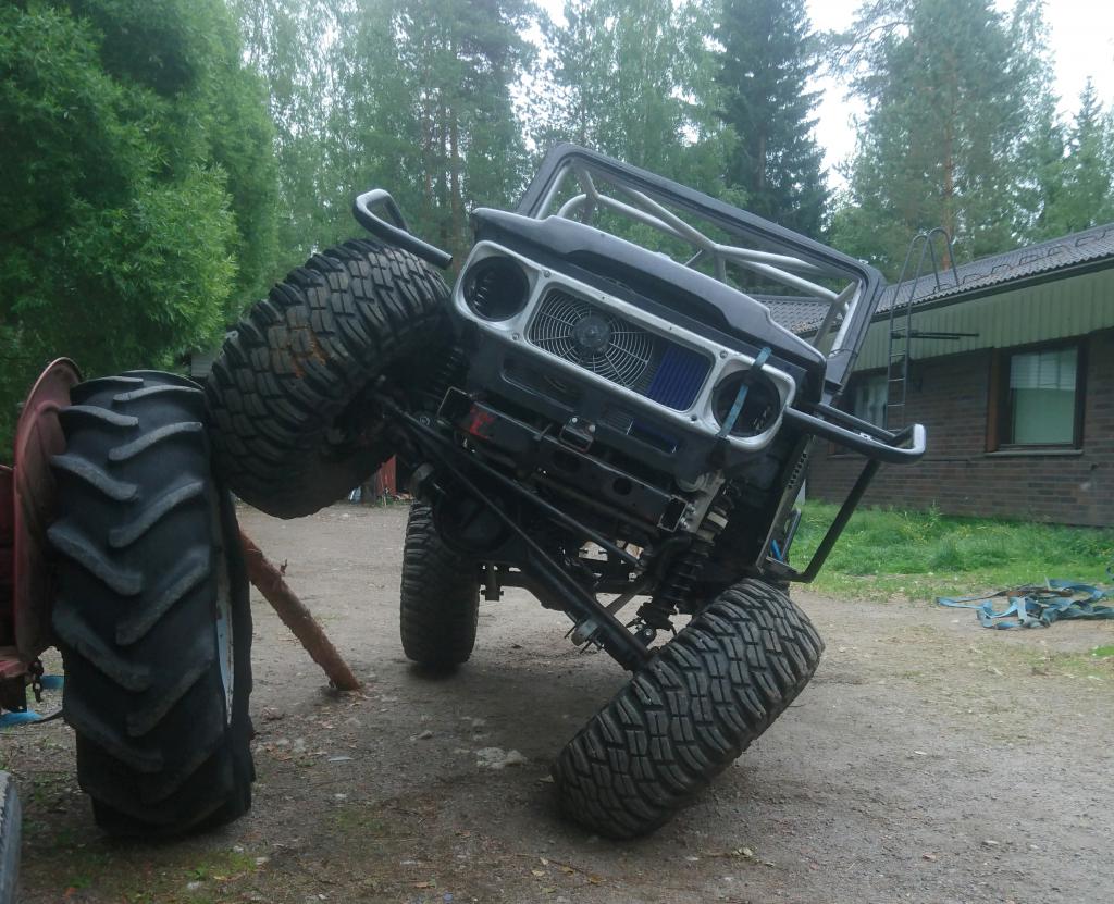 ONyt kun oli pohjaanlyöntikumit ja muut paikoillaan oli aika koittaa kuinka paljon riatiriipuntaan voi ajaa ennenkuin alkaa renkaat takertaa takaa sisäreunasta kaariin ja runkoon ja eestä koilovereihin. Tuohon joustot rajoitetaan.