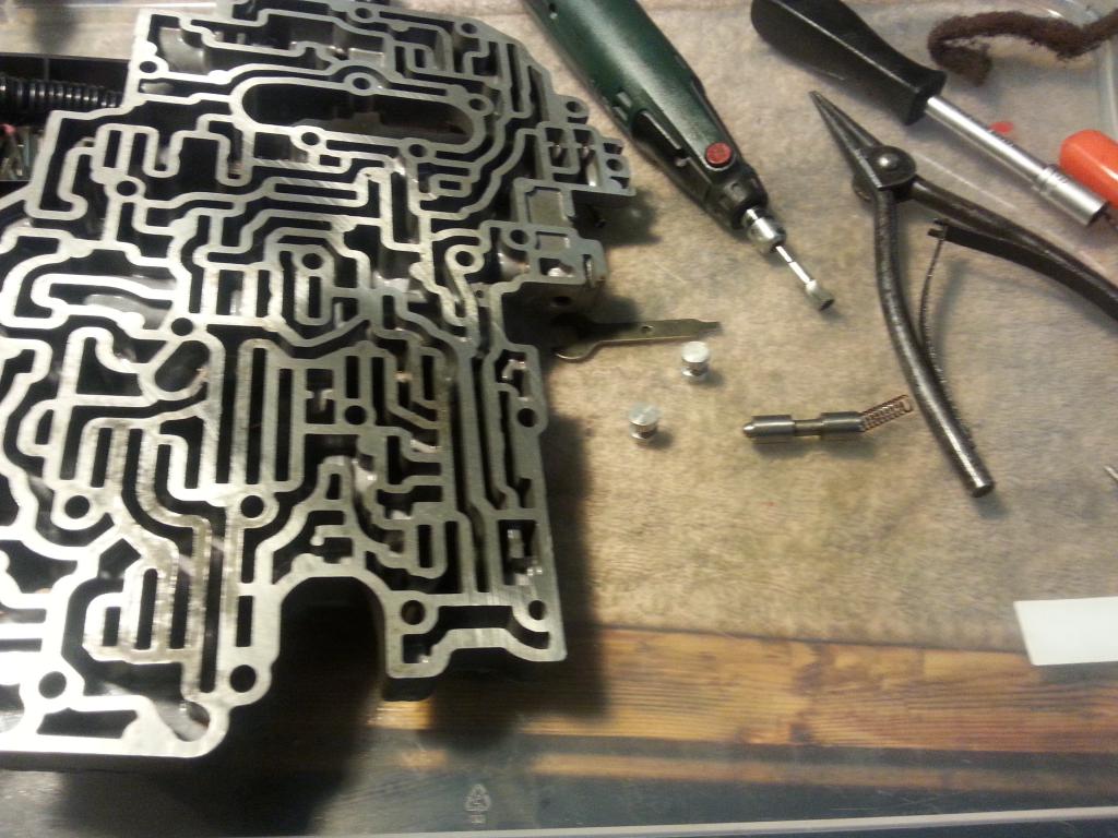 gonna drill the middle plate and close it up till the cracking. i used toyota supra 7m-ge service specs as reference. jeep aw4 diagrams/specs didn't match on the valve body i have. |