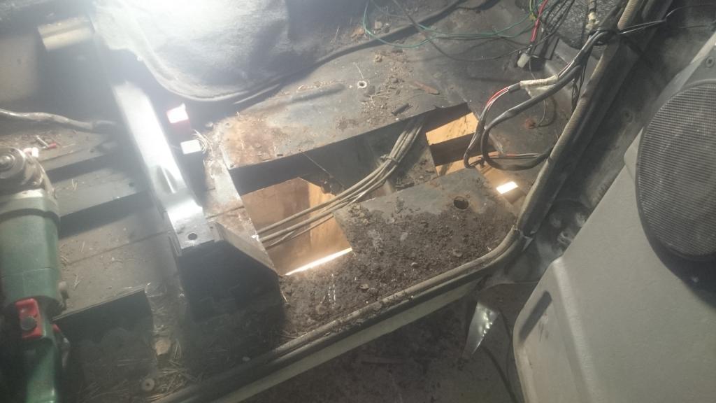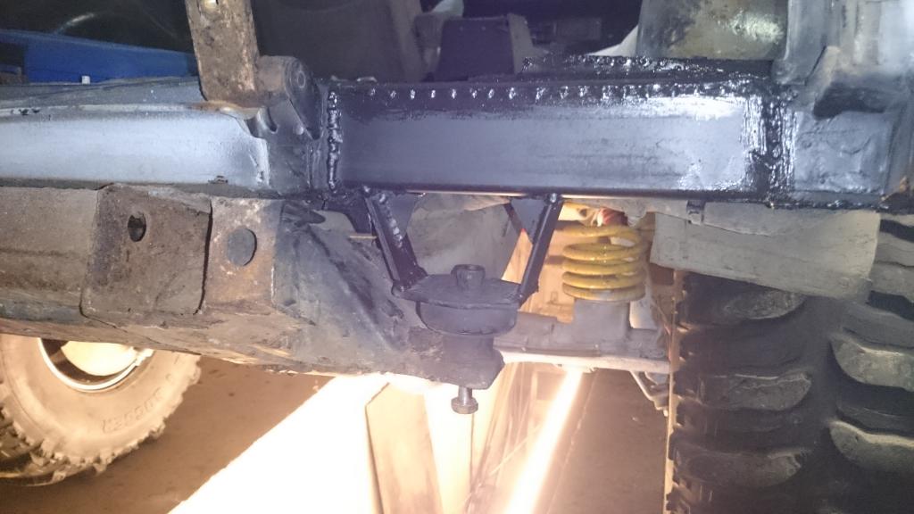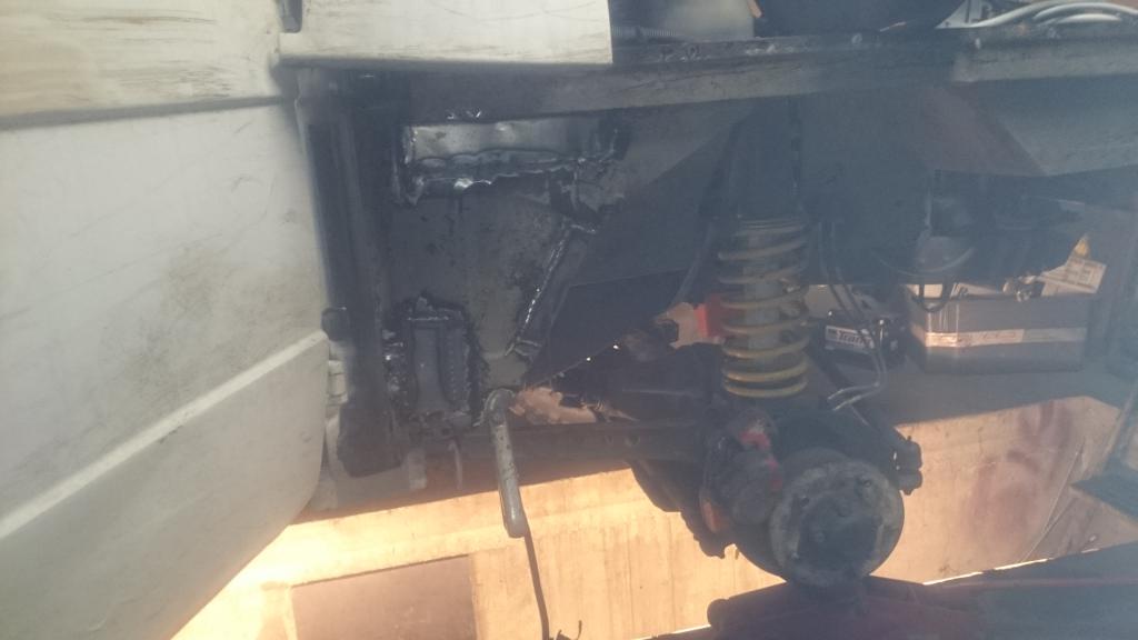 Harjotukset jatkui taas...takaa oli korin kannake ja poikkipalkki päässy vähän huonoksi joten ne meni kans vaihtoon,60x40 rhs tuli palkiksi ja pohja 2mm pellistä.jos sillä taas vähän aikaa mennään...:-) tunkki muutti konepellille ja tulipa huomattua että runko on murtunut molemmin puolin takaiskarin kiinnikkeiden kohdalta,ne ku vielä hitsailee ni ollaan taas aika lähellä leimaa,hitsataan sit taas vuoden päästä lisää...:-D