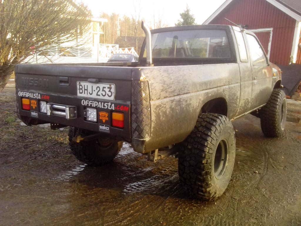 Näyttää kyllä komealta noilla BF Mud-terraineilla. Itseläkin patuun tulossa saman kokoset muud terrainit. Näytti olevan myynnisäkin sama auto http://www.nettiauto.com/nissan/king-cab/7079254