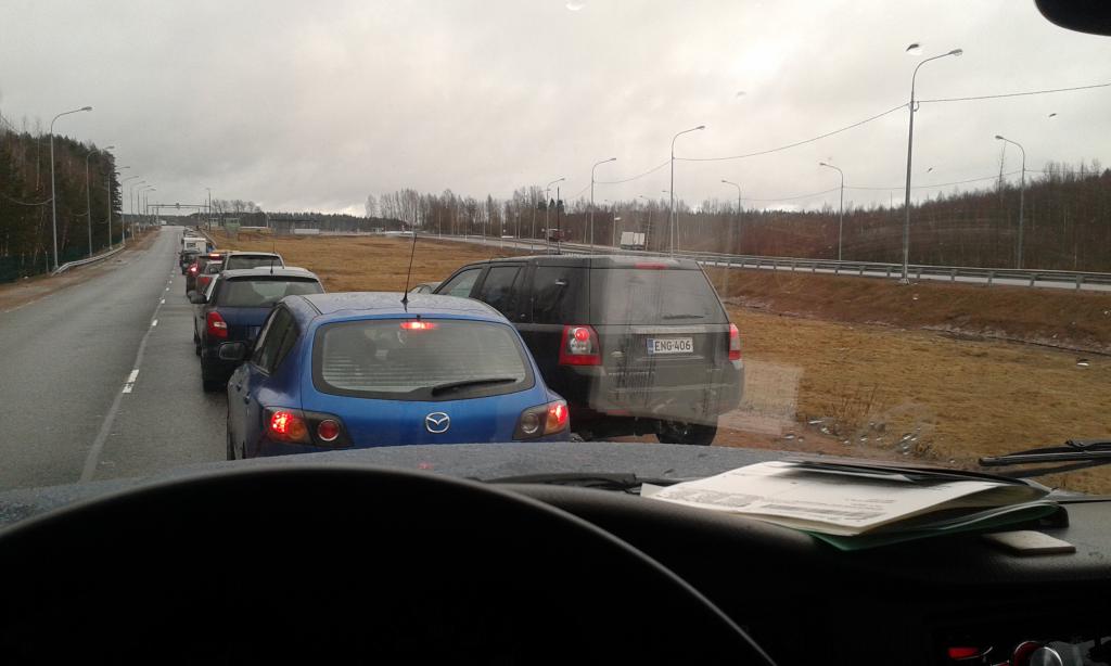Niin, itsehän olen kotona, facessa oli just julkaistu video jonosta ![]() Nuijamaan kautta saattaa päästä sujuvammin yli.
