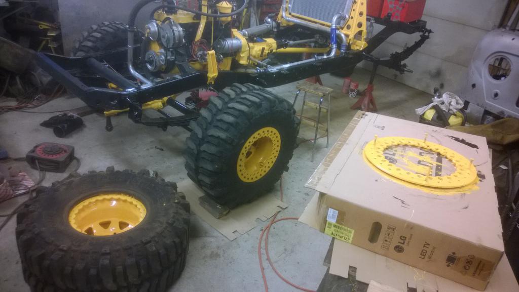 Tänään näpräilin vähän lisää ja putsailin raidetangon, jarrukilvet, taka-akselin putken ja jouset + ohjauksen tangot. Sitten vain
