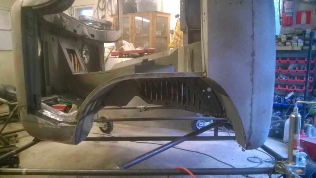 Samoten kuljetuskalusto rupes oikkuilemaan niin aikaa on pitänyt käyttää siihenkin eikä vielä valoa tunnelin päässä näkösällä ![]() Mutta sen verran tänään rupes jo ketuttamaan nuo muut hommat että pitihän se tunnin verran tallissa pyörähtää ja tekasta tuo yks pala valmiiks odottelemaan hitsausta. Nyt olis pyöränkaaren/lokasuojan takaosa hahmoteltuna paikoilleen uutta laajennosta mukaellen. Eiköhän tuo nyt vähän aikaa pysy reiättömänä, 2mm teräksellä mennään edelleen Pari paikkaa alakulmaan vielä ja voi siirtyä seuraavaan paikkaan eli varmaan lattiaan kuskin penkin alla. Sinne menee pari pikku paikkaa. |
