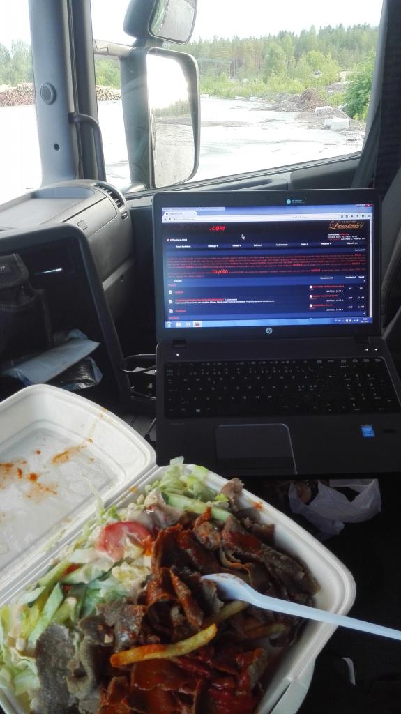 Näyttäs Scorpionilt... Onko tuolla kuin paljon painoo? Näytti eräällä olevan 5 akselisen kyytis tuollanen täällä päin... Ja kuski tuumas, että kaks veljest sen omistaa ja itse kuskina sillä, sekä ajokoneella samat heput. Ja Dodgen 250:set lava versiot kummallakin veljeksellä (musta ja toinen hopea).