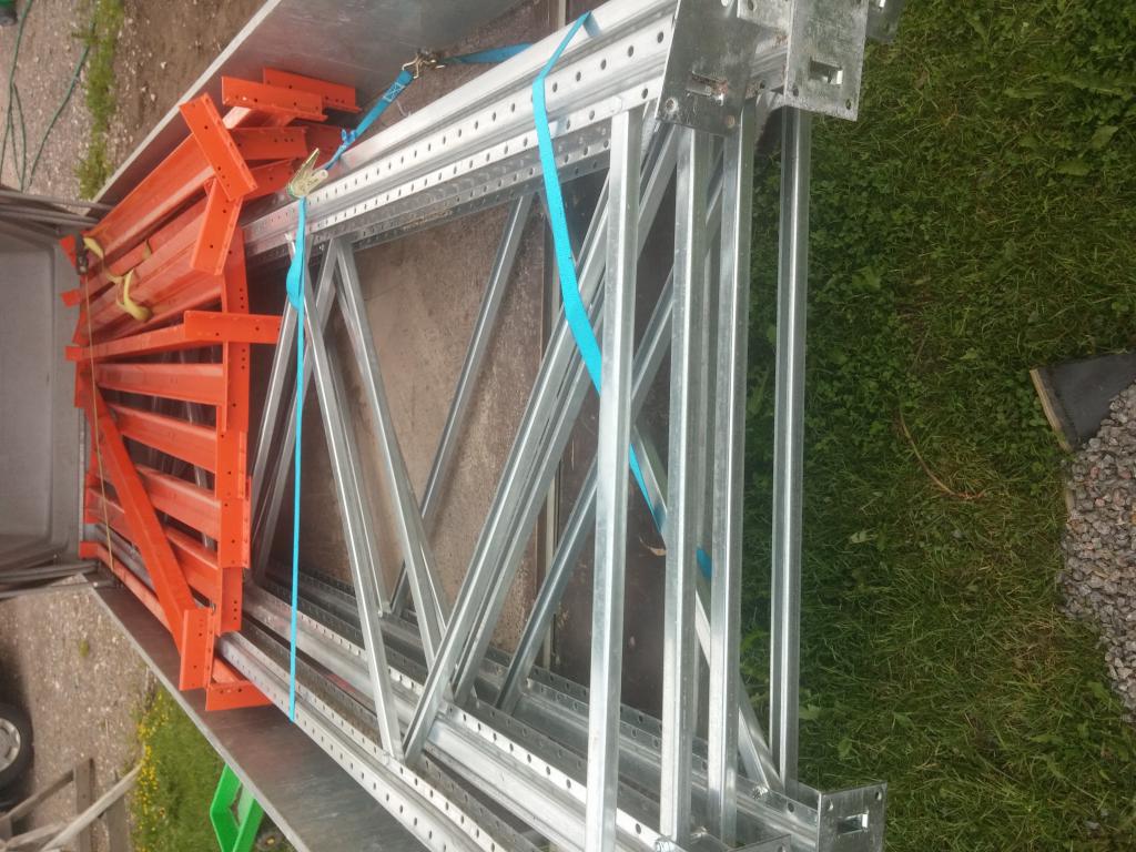 Hyväkuntoista trukkihyllyä. 4kpl 4 metrisiä päätyjä ja 18kpl 2.3m vaakapalkkeja. Myydään vain yhtenä pakettina.