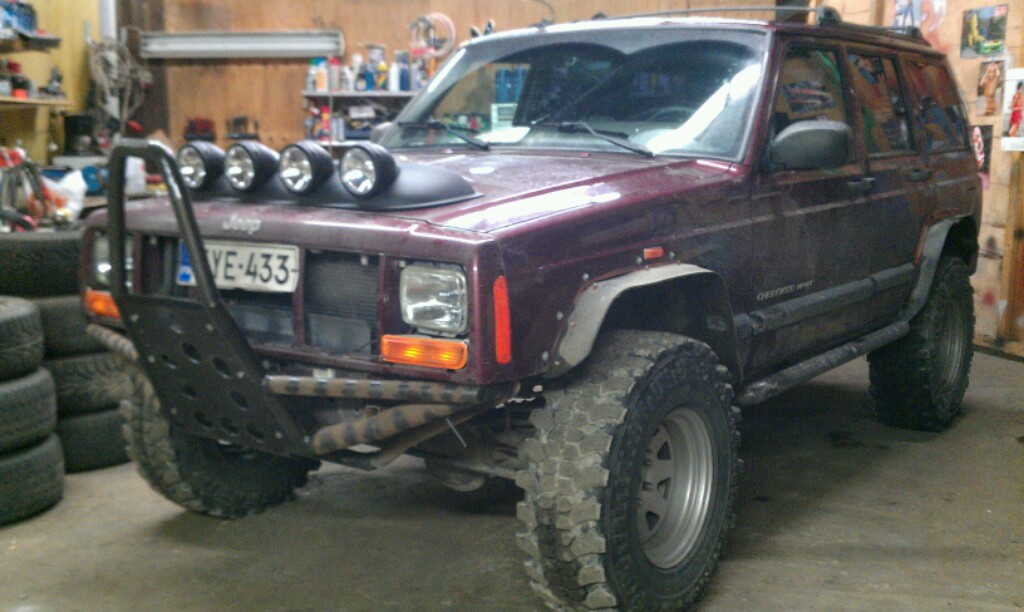 Jeep Grand Cherokee 5.9 Limited LX, käyttöauto sopivasti maastoon varusteltuna. Jeep Cherokee 4.0 - Ikuisuusprojekti Moggiakseleilla, 42" renkailla ja kaikensortin enemmän ja vähemmän oleellisilla ominaisuuksilla. Jeep Cherokee 4.0 - Menehtyi kunniakkaasti Stadin Cruiseissa 5/2008. |