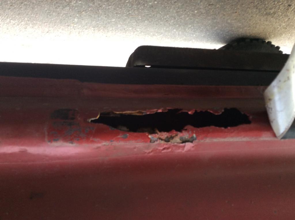 Hilma selvisi katsastuksesta vaikka katsastusaseman sedän myrtsimökötysvittuilutyylinen asiakaspalvelu ei ihan hyvää luvannutkaan. Setä kaasutteli, kolisteli, väänsi ja käänsi kaikki. Lipputuloksena pikku hitsijuttu. Kopperon alaosassa tommonen peltihomma.
