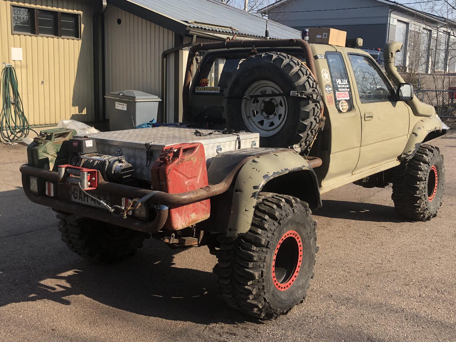 Jaa-a .... paljon on tekemistä jos kaikki suunnitelmat meinaa hoitaa , mut katotaan mitkä näkee päivänvalon. Nyt tehtynä: -korin ja rungon korroosiovaurioita / Suunnilleen hoidettu -etuakselin väärää ja riittämätöntä asennusta / pikkumodauksen ja uusien CoilOvereiden jälkeen tuli aika hyvä, joten tuskin tehdään muuta -etujousien S-muotoa / korjattu samalla -etuakselin alkuperäisen LN65 mallin traction bar:n puutosta/ tulossa -sisustan puutteita/ kaikki puutteet korjattu -radion puutetta/ ei kannata asentaa- ei metässä tarvi -penkkien verhoilujen vaurioita/ korjataan jos jaksetaan -takaluukun kahvan puuttumista/ uus asennetttu -snorkkelin asennusta, mallia ja materiaalia/ asennettu paikoilleen - ilman putsarin uudelleen asemointi vielä -ratin pienuutta ja mallia / hyväkuntoinen orkkis asennettu -penkkien asennusta ja puutteellista kiinnitystä / korjaan kun kerkeen, pysyy ne kiinni vaikka rumat -turvavöiden toimimattomuutta/ toimii -akkujen kuntoa/ uudet AGM ja siirretty ja koteloitu lavalle -akkujen kiinnitystä/ kts yllä -pakoputken (riittämätöntä) suunnittelua ja asennusta , sekä materiaalia -pakoputkesta (pakoputkettomuudesta) johtuvaa infernaalista meteliä/ kaikki uutta putkessa -katsastamattomia ja voblaavia renkaita / Nooh... joo.. -lavakatteen kuntoa (ei kuvissa)/ Kuusankoskella... -etupuskurin puutosta/ uusvanha puskuri asennettu -takapuskurin mallia, kuntoa ja kolarivaurioita/ jotain teen kun saan inspiraation -karjapuskurin innovatiivista mallia ja painoa/ kts edellinen -korin maalausta ja maalausteemaa/ täst tuli aika hyvä vaik ite kehunkin ![]() -vaihteiston epämääräistä toimintaa/ korjattu uusilla öljyillä, snadisti laakeri sihisee pienillä kierroksilla vedättäessä, mutta kestää varmaan vielä 50tkm -jakolaatikon ääntä ja suurta laakerivälystä/ Tulossa välityssarja ja lakrut -takakardaanin ristinivelten väljyyttä/ Kaikki uutta -etukardaanin tuplaristin ja liu-un väljyyttä/ ristit uutta , mutta liuku pitää korjata joskus -moottorin päästöjä ja savutusta/ Korjattu ja säädetään kohta ihan kohdalleen -toimimattomia ajovaloja/ toimii -tuulilasinpyyhkijän puutosta/ on uudet ja toimii -kaiuttimien asennuksessa käytetyn vanerilevyn ja naulojen esteettistä vaikutelmaa/ Kaatopaikalla -taka-akselin jarrujen puuttumista/ toimii -käsijarrun tehotonta toimintaa/ toimii -taka-akselin öljyvuotoja/ uudet stefat ja nyt ei vuoda -etuakselin öljyvuotoja/ uudet stefat ja nyt ei vuoda -moottorin öljyvuotoja/ hoidetaan samalla kun jakohihna vaihtuu ja säädetään -vaihteiston öljyvuotoja/ korjataan välityksen asennuksen kanssa -jakovaihteiston öljyvuotoja/ kts yllä -ohjaustehostimen öljyvuotoa/ tää on pakko tehdä ihan justiinsa... ![]() -jarruvalojen ja rek.kilven valojen puutosta/ toimii -ohjauksen vaihtoa huonompaan (ln110>ln65?)/ tulossa High Steering kitti ja uus simpukka -vinssin toimimattomuutta / hienosti toimii kun on uus -sähkölaitteiden yleistä toimimattomuutta/ kaikki toimii -hehkujen puutosta/ toimii hienosti taas -alkuperäisen sisävalon korvaamista veneen kulkuvalolla/ nyt on orkkis+ledit -lavan korroosiovaurioita/ korjattu paremmalle mallille -ovien korroosiovaurioiden korjausta / uudet ovet jostain pitäis saada... -tasauspyörästön lukkojen puutosta/ Ei puutu enää, molemmissa on -lokasuojien ylimalkaista leikkausta ja levikepeltien sekä kittiklimppien esteettistä arvoa/ uudet lokarit ja isoimmat kittiklimpit poistettu -ajoneuvon yleistä kuntoa/ Paranee kokoajan... Eli paljon on tullut tehtya ja paljon on tekemistä. Lähinnä työn alla on takajousituksen parantaminen sekä ohjauksen parantaminen ja välityssarjan tai tuplajakiksen asennus. Ehkä turbotus tai mekaaninen ahtaminen sitte joskus ennen joulua? Ja jos ajatuksella jaksoit lukea koko listan läpi - niin hanki elämä , sulla on liikaa aikaa ![]() ![]()