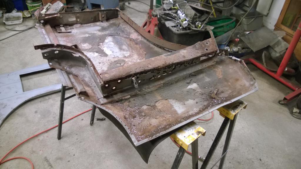 Koska rungon etuosa näytti olevan kohtuu rumassa ruosteessa purin senkin vielä täysin osiksi ja alottelin korjaamisen