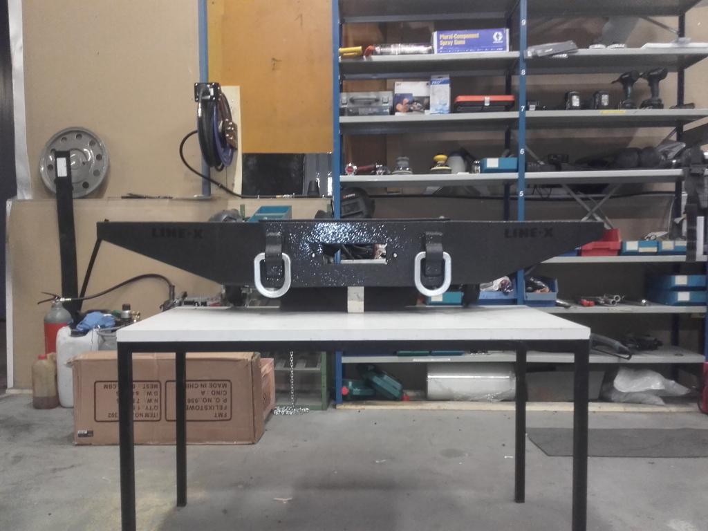 Line-x pinnoitetta 2mm ympäriinsä ja on huoltoluukku.