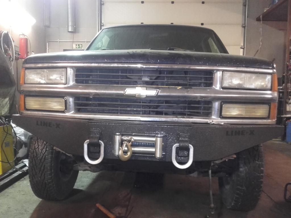 Onko tuossa päällä huoltoluukku vinssille? Jämyn näkönen puskuri. Minkä paksuista levyä?