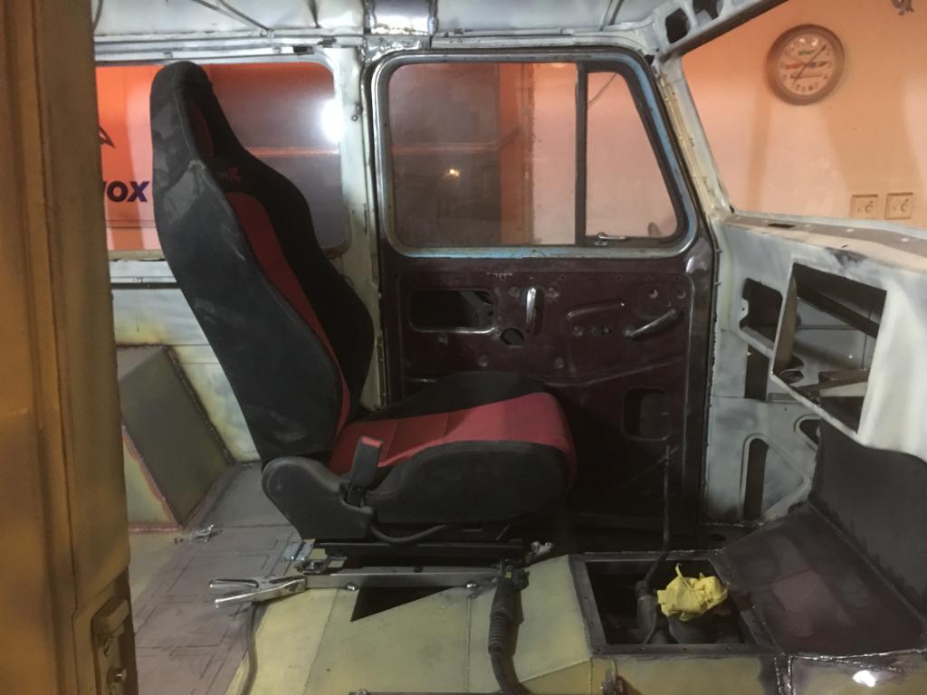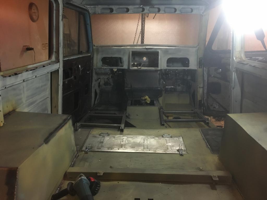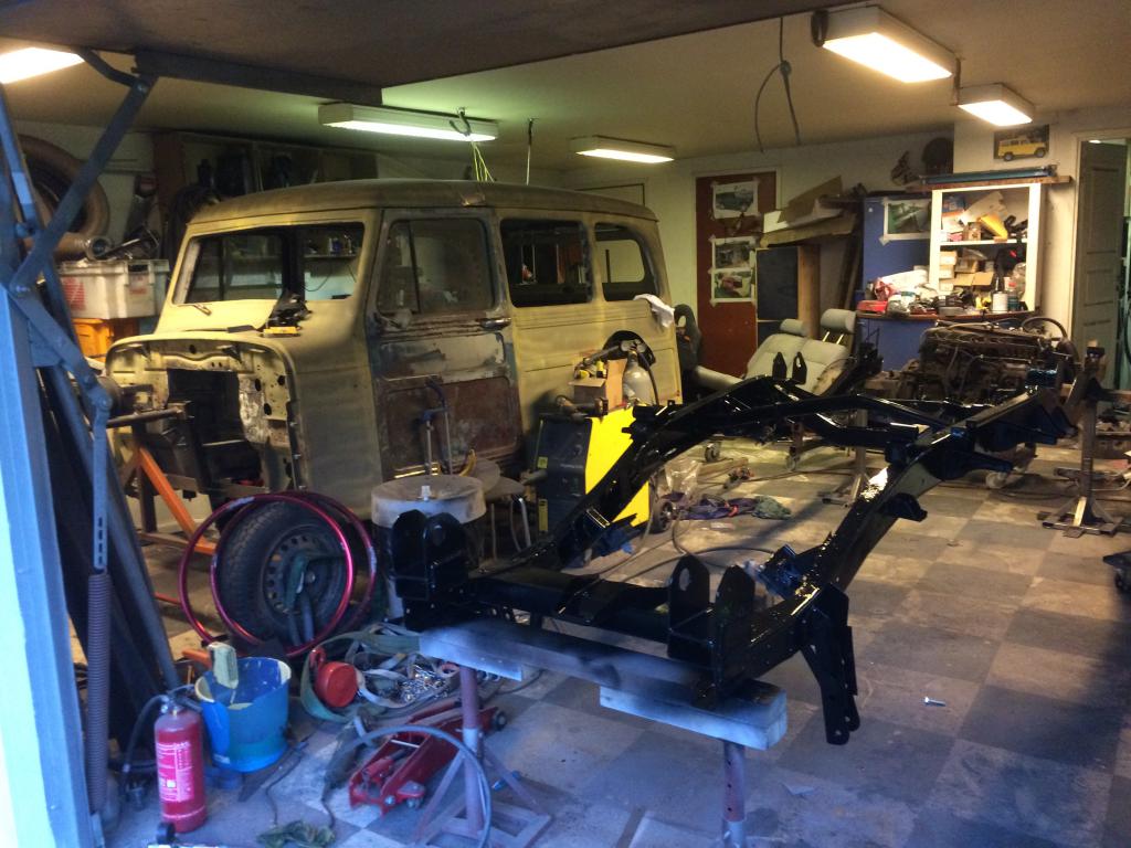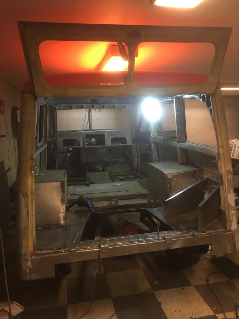 Taas on vähän jumpattu mitä työreissuilta on ehtinyt... Tuohon tallin reunalle sain yksin työnnettyä tuon malmikasan. Ei tullut edes takarenkaat yli kynnyksestä vaikka kuinka kiroili. Noh taljalla kun vähän avitti niin saihan sen tallin lämpöön. Seuraava ongelma olikin sitten tuo tallin korkeus. Takarenkaat kun sai talliin niin heti piti ne poistaa ja laittaa kelkat alle. Sama homma sitten etusille ja silti jäi se sentti pelivaraa, että mahtui liukumaan kopan alle. Noh siitä sitten nostelemalla ja laskemalla muutamia millejä kerrallaan kaikki 14 korin kiinnikettä kiinni. Kyllä se taas näyttää kivalta kun on runkokin kopan alla. Kuskin penkin kelkka ei ollut vielä liimattu paikalleen ja nyt sekin olisi hoidettu. Luukkujen purkuhommia ja lattian putsailua niin pääsee täräyttämään maalit sinnekin. Koetauluun tuli tehtyä vähän isompi reikä mittareita varten. Tuohon sitten alumiini tai kirkas levy minkä pistää pulteillä kiinni. Purkua ja putsailua niin hommat taas jatkuu. Työreissua kyllä sen verran tiedossa, että en tiedä millon ehtii epoksia sutimaan. |