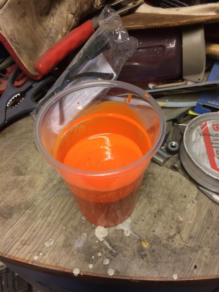 Paljastetaan nyt vielä sitten tuo ajateltu pintavärikin. Tulipelti tulee kopan värillä, mutta muuten pohja tuleekin mustalla. Kovaa pohdintaa aiheuttaa pinnan kiiltoaste. Tekisi mieli mennä ihan matalla värillä. Lisäksi pitäisi päättää olisiko katto valkoinen vai tuo RAL 2009 oranssi. Loppu pinnat jos ehtisi tässä joku päivä suhauttaa pohjaan niin saisi kopan nostettua rungolle. Tästä se pikkuhiljaa pakollakin etenee.